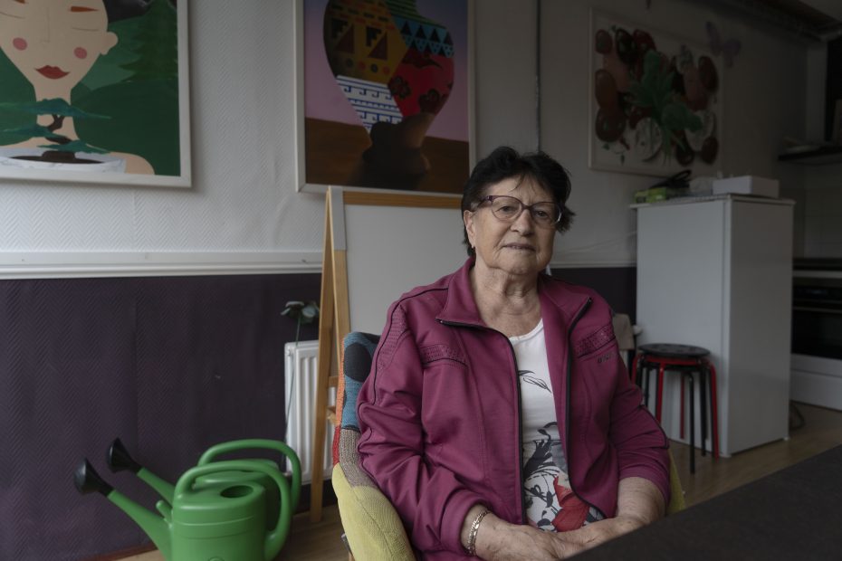 Een Bulgaarse mevrouw van 86 heeft tijdens de participatiebijeenkomst minstens acht tekeningen gemaakt. Haar hele huis hangt vol met kunst en priegelwerk en bij binnenkomst staat er op vol volume een buitenlandse radiozender aan. Haar ogen staan triest, maar haar lach is onmiskenbaar. ,,Mijn ijsvogeltje komt op de muur!’’ De dame woont al 23 jaar in de James Last flat en heeft veel verdriet gekend in haar leven. Haar Nederlands is niet heel goed, maar zoals kunst mensen verbindt, kunnen emoties dat ook. Haar ogen worden waterig als ze vertelt over haar overleden man en zoon. Ze reisde 33 jaar geleden af naar Nederland voor de liefde, maar vindt nu haar geluk in het maken van schilderijen. Als de donkere winterperiode aanbreekt komt ze door het maken van kunst samen met mensen. ,,Ik denk dat de muur hetzelfde gaat doen.”